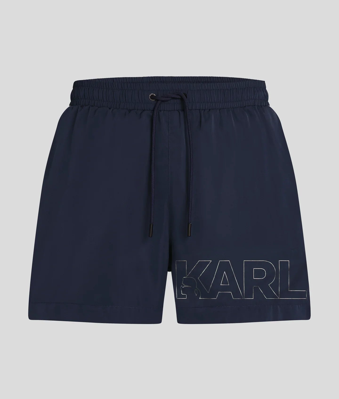 These short-length boardshorts deliver a sleek silhouette and feature an elasticated drawcord waistband for a comfortable fit. The inner mesh brief adds support, while the metallic KARL logo elevates the design.