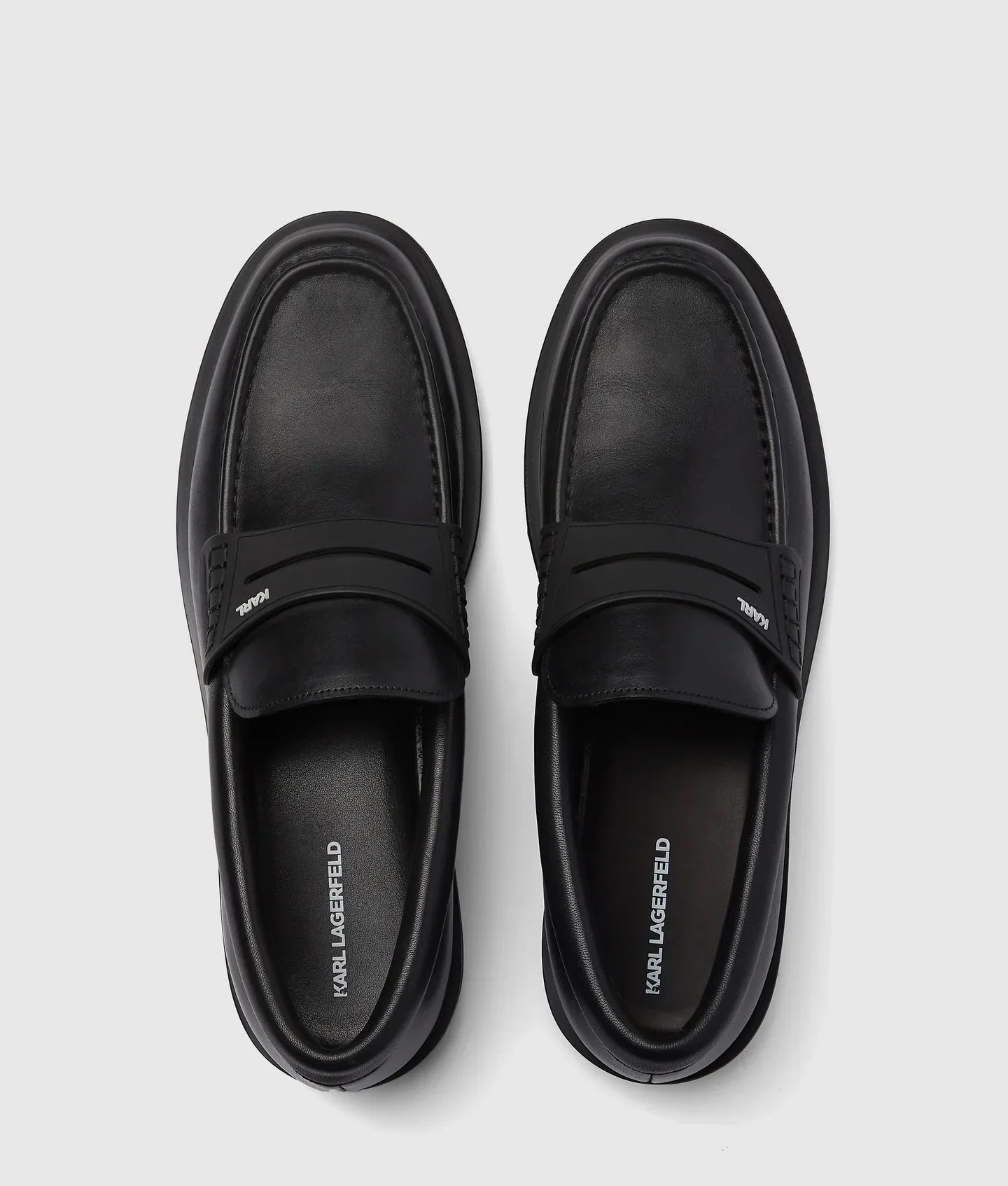 Elevate your footwear with these timeless loafers featuring a sophisticated, polished leather finish. A classic saddle detail with subtle branding is crafted from rubber, adding a contemporary urban edge.