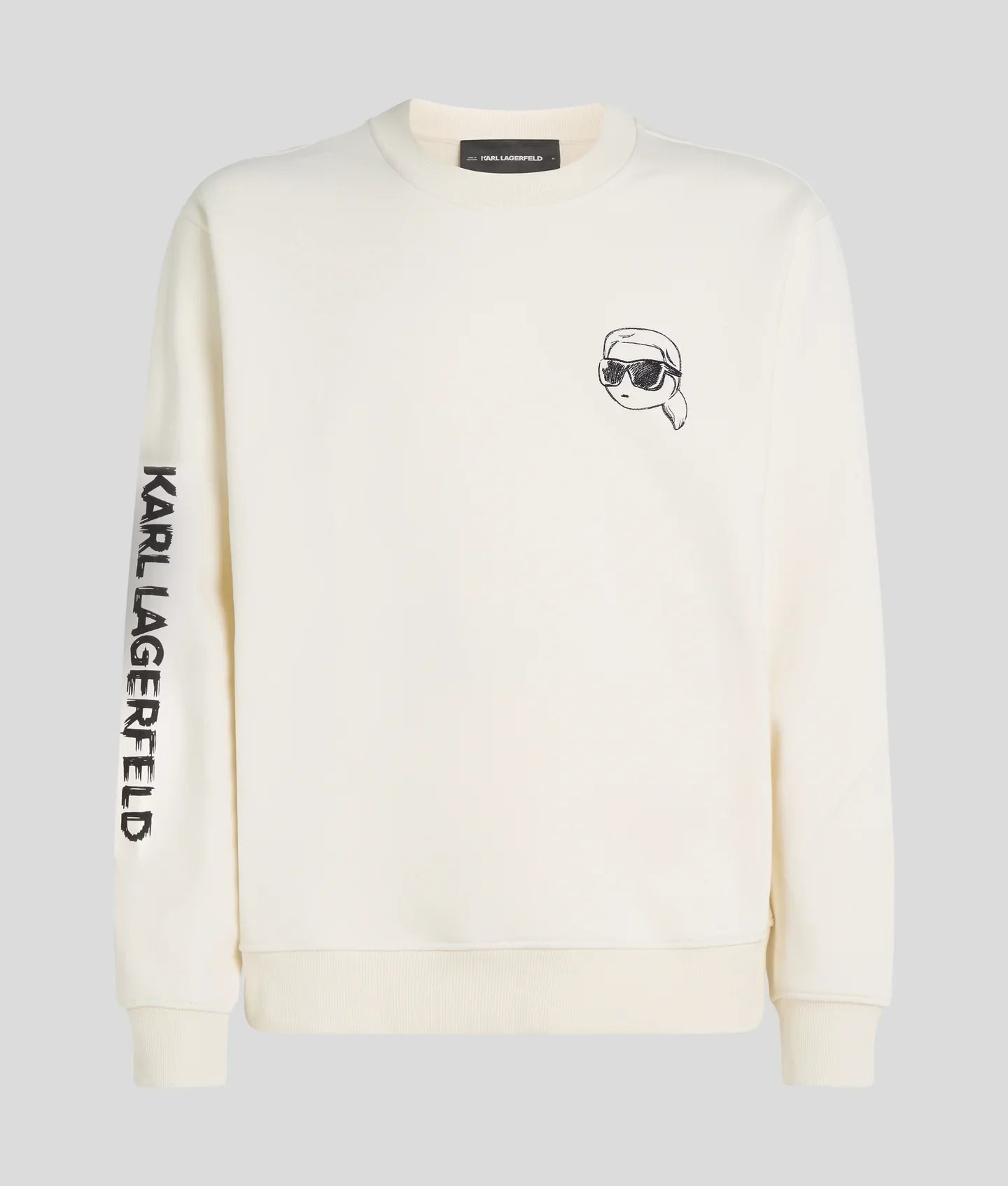 This sweatshirt offers comfort and style with bold IKON artwork adorning the back. The unmistakable KARL LAGERFELD logo running down the outer sleeve completes this statement-making essential.