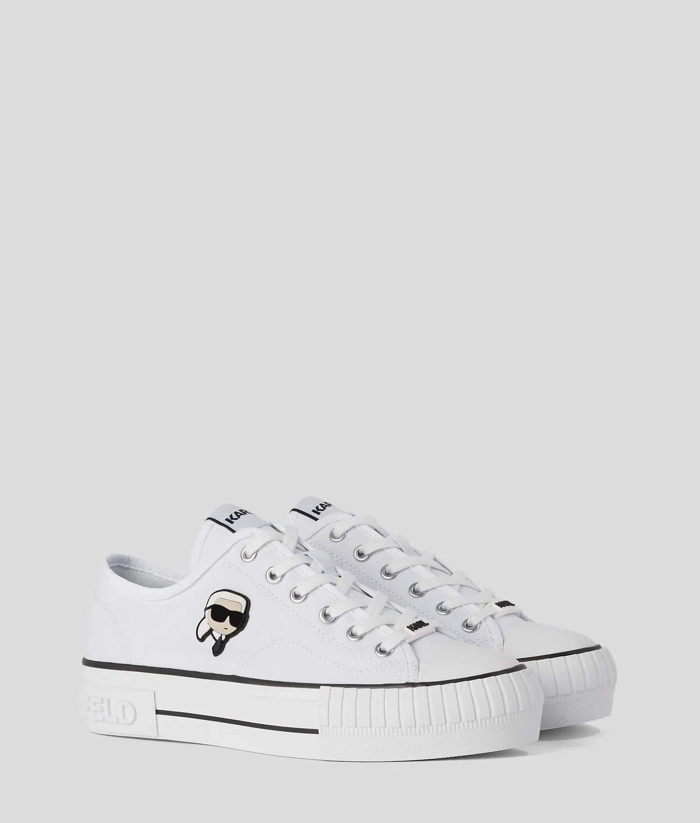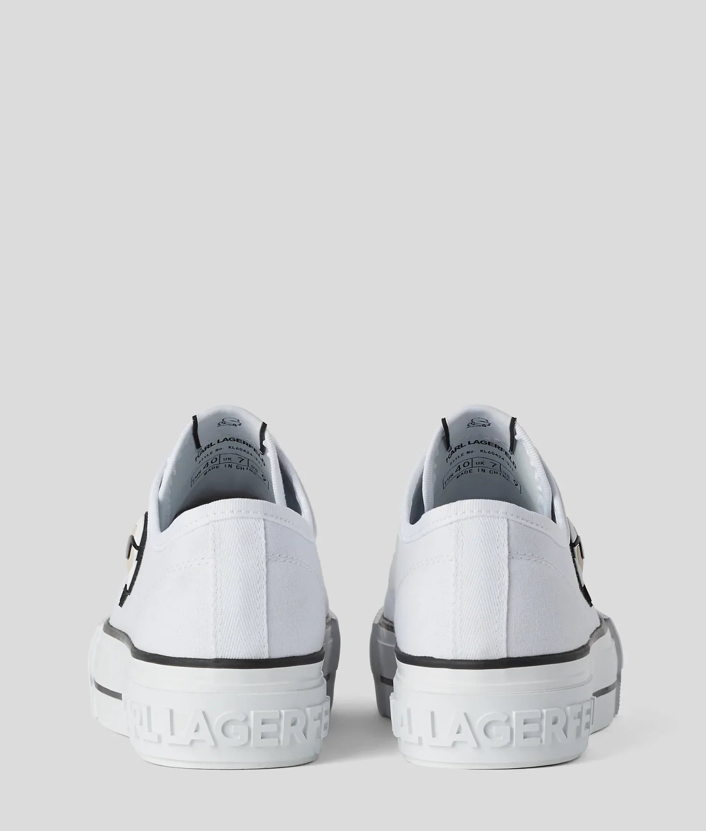 In a fusion of contemporary art and street style, the canvas KAMPUS MAX LOW TOPS feature a woven NFT patch. The lace-up ensures a tailored fit, while a rubber toe cap adds durability, complemented by a KARL-debossed heel for a touch of luxe.