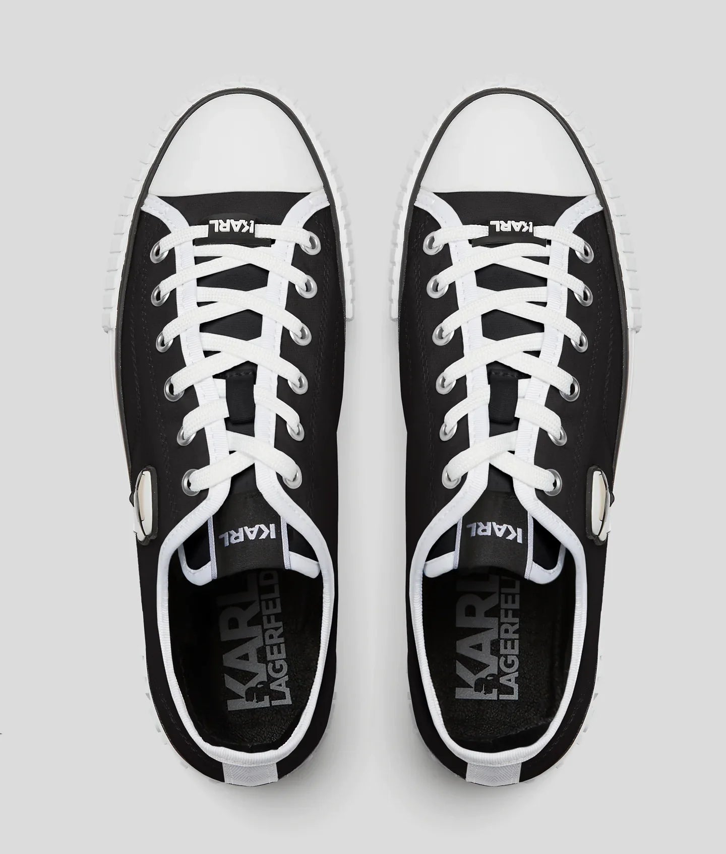 In a fusion of contemporary art and street style, the canvas KAMPUS MAX LOW TOPS feature a woven NFT patch. The lace-up ensures a tailored fit, while a rubber toe cap adds durability, complemented by a KARL-debossed heel for a touch of luxe.