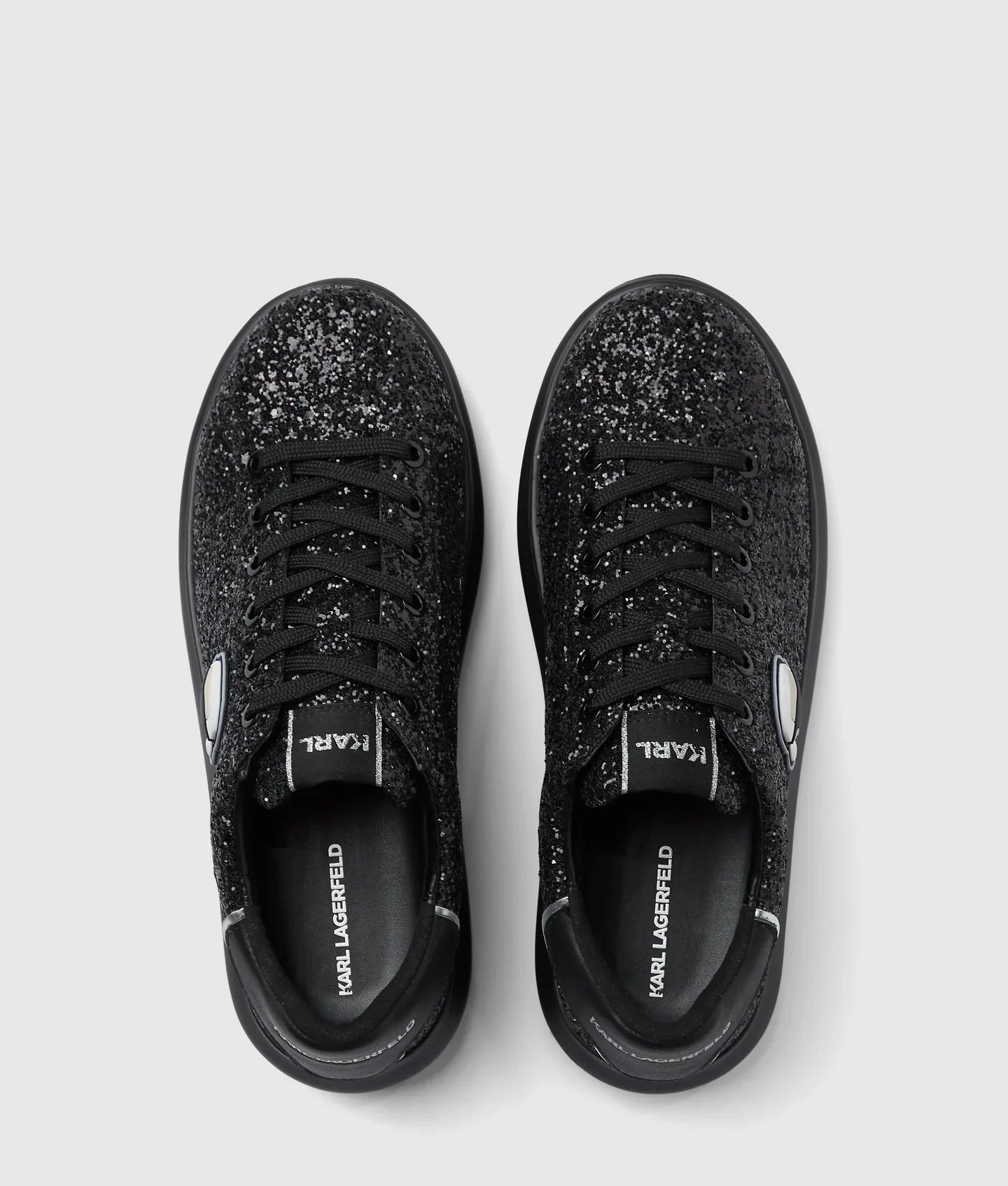 The Karl NFT logo artwork returns to a glitter textile upper that turns a minimalist sneaker into a statement piece at your feet.